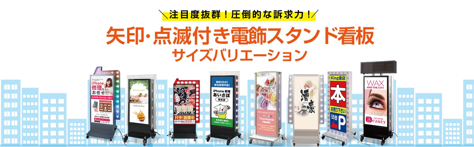 鮮やかな点滅と矢印で、遠くからでも人々の視線をキャッチ!通りすがりの人々の注目を集め、確実にあなたのお店へ誘導します。