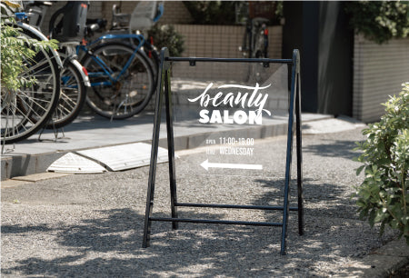 オシャレな店舗の店頭や店内エントランスでお客様をお出迎えするオシャレなショップサインスタンドです。
